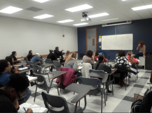 Dr. St. Vil’s students filling out evals. Their most frequently commented take-away? “Ms. Dynel’s level of honesty; she made me think differently about what it’s like for a victim once they leave their abusers.”